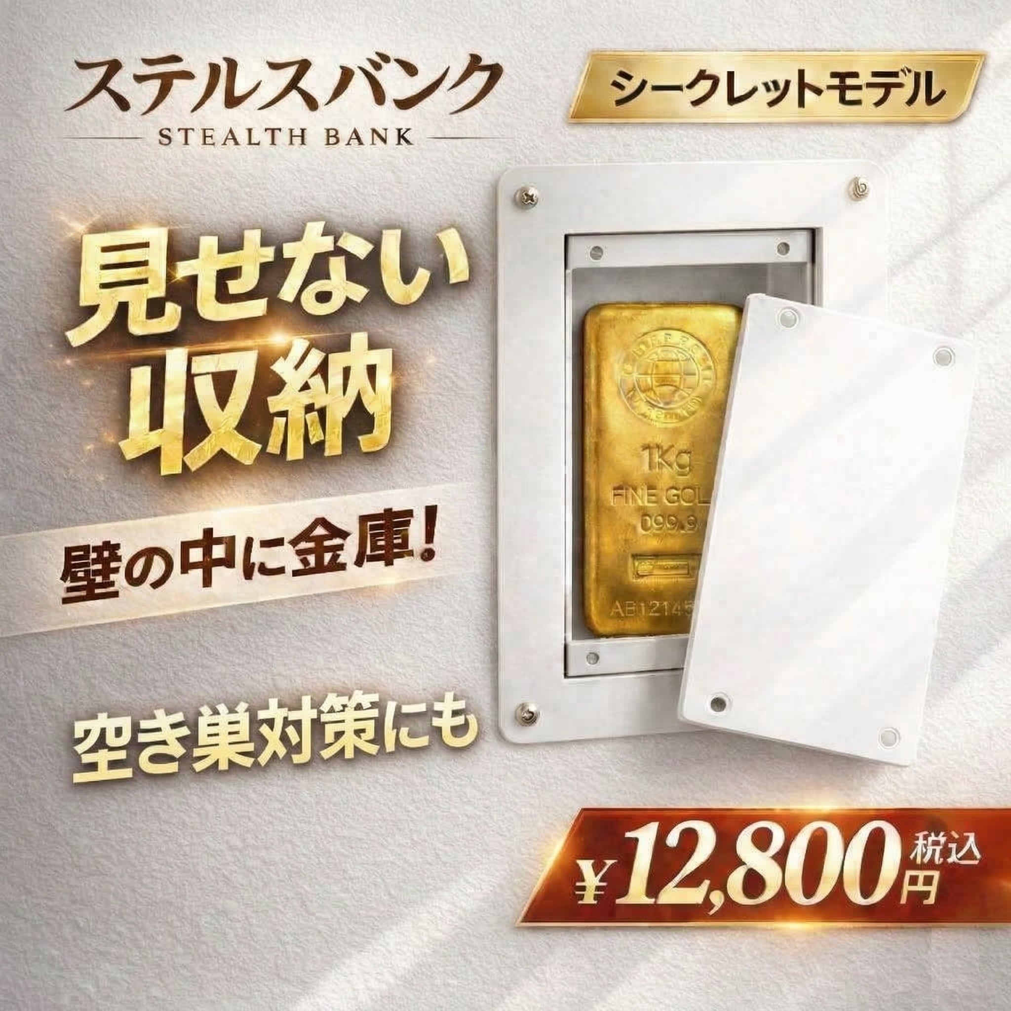 余談ですが… この小さなサイズながら、純金のインゴット(1kg)が最大3本収納可能です。2026年現在の金相場では、7千万円以上の金を壁の中に収めることができます。